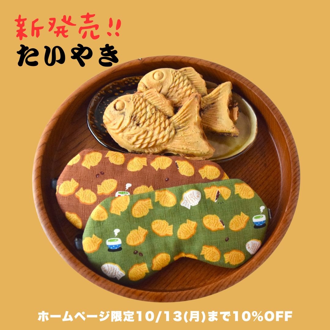 かわいいたいやきのアイマスクが登場!秋風が吹き始めたせいか、あれだけ食べていたアイスからあったかい小豆に食欲が変化しています🫘