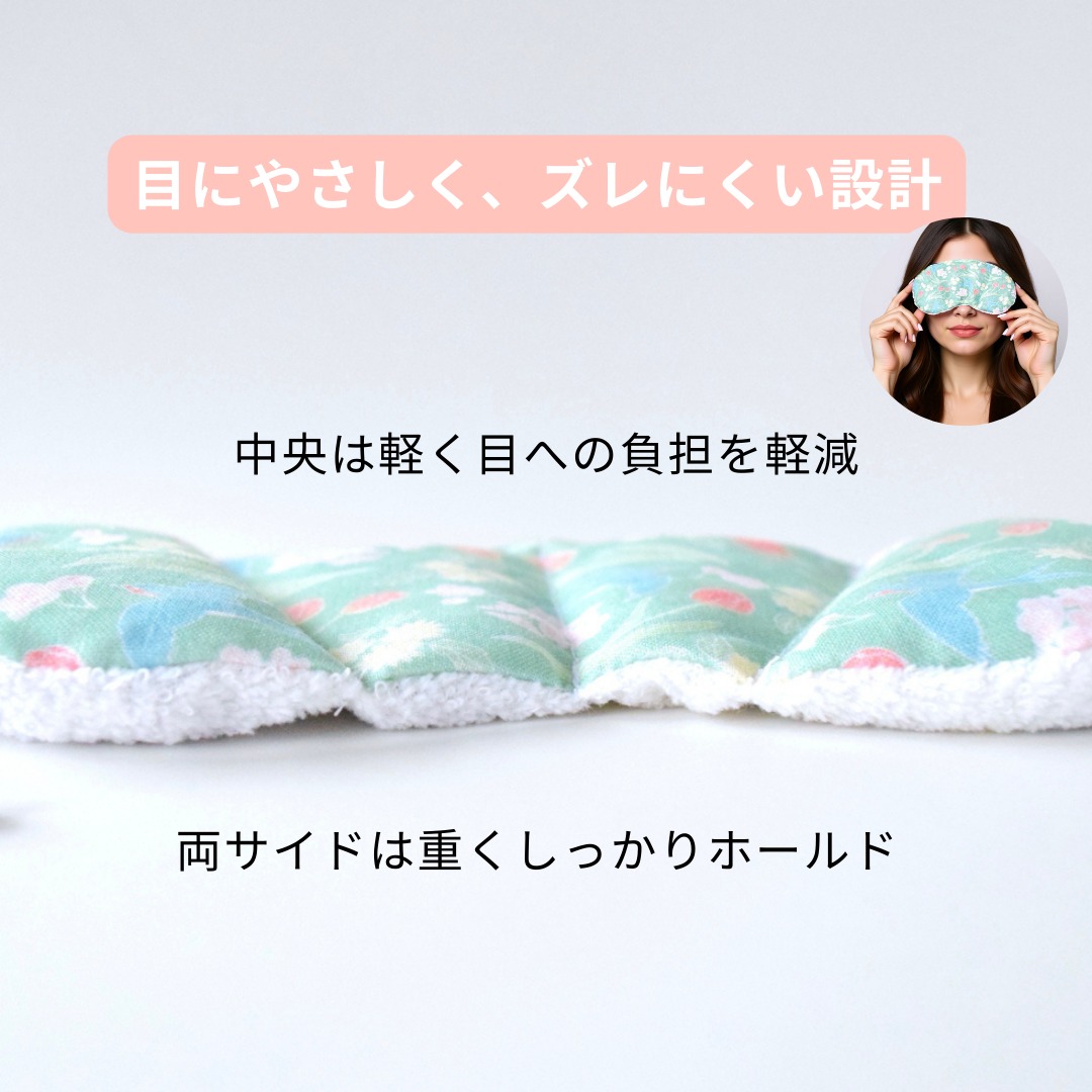 ご要望の多かった小豆のホットアイピローがバージョンアップして再登場!目にやさしくズレにくい設計になるようグラム単位で試行錯誤を繰り返し完成しました。