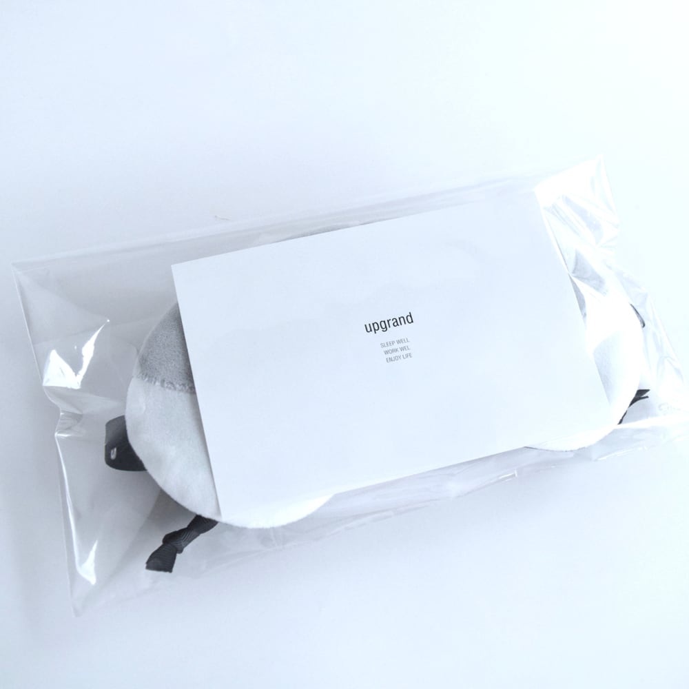 ご自宅用包装はシンプルに、収納ポーチの中にアイマスクを入れ帯を巻いたエコ包装です。