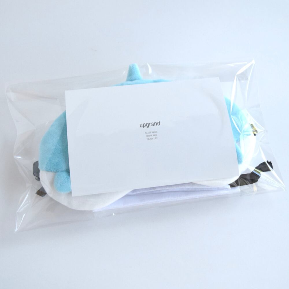 ご自宅用包装はシンプルに透明の袋にアイマスクと収納ポーチを入れております。