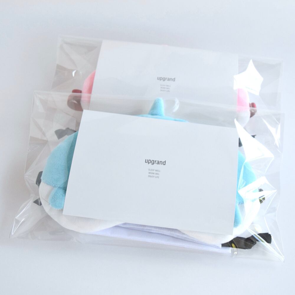 ご自宅用包装はシンプルに、収納ポーチの中にアイマスクを入れ帯を巻いたエコ包装です。