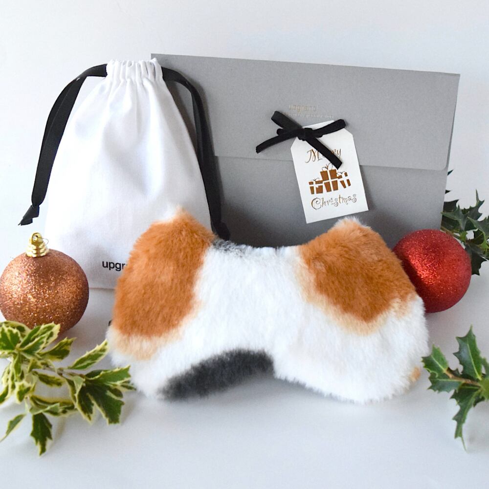 真冬のふわもこキャットアイマスク|三毛猫|収納ポーチ付|無料クリスマスギフトラッピング有