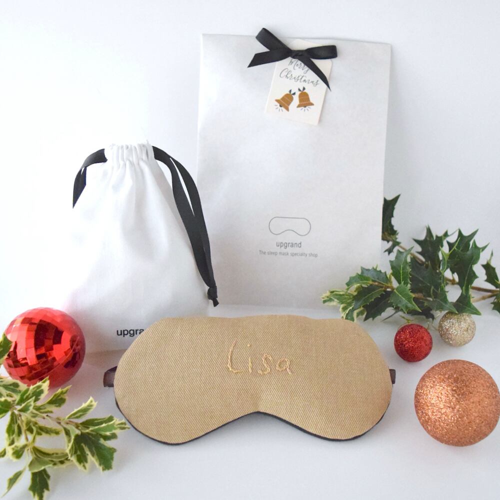 お名前刺繍アイマスク|ソフトデニム|ベージュ|収納ポーチ付|無料クリスマスラッピング有