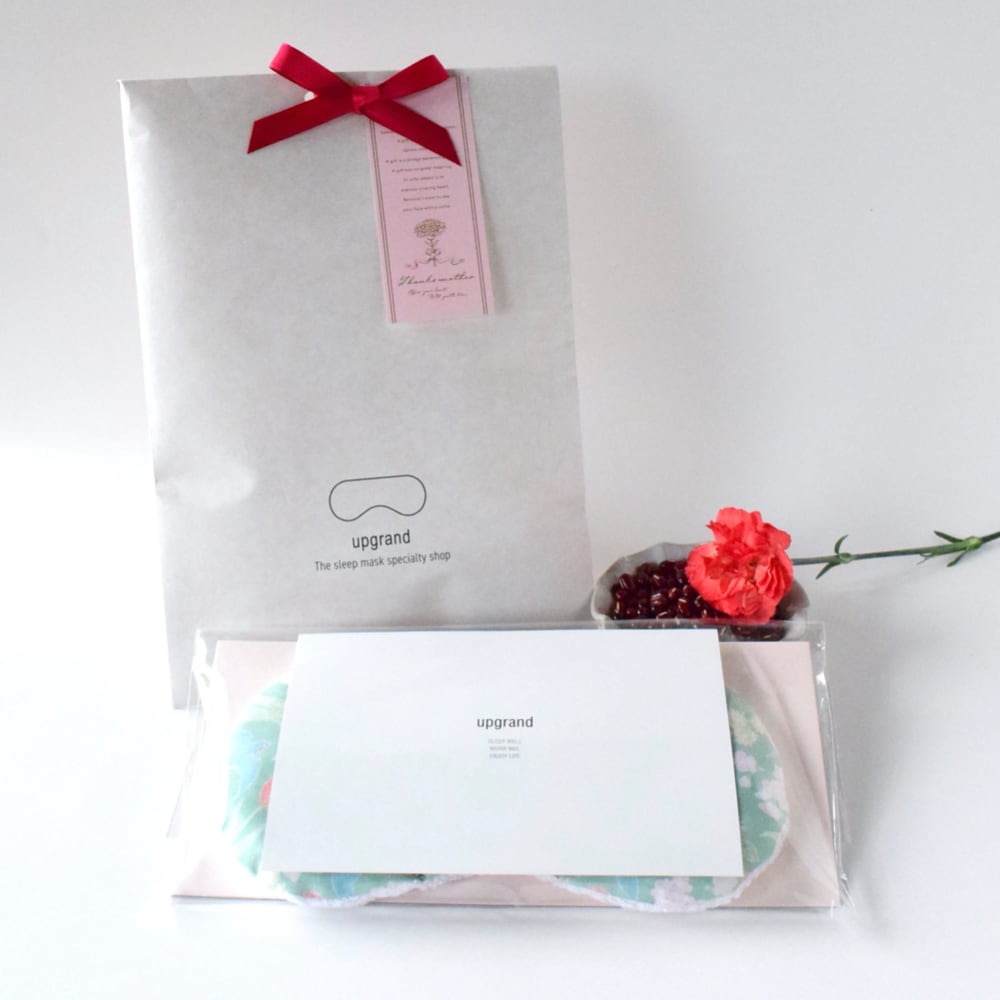 ブランド名のupgrandをゴールドで箔押しし、ベルベットの黒リボンを結んで仕上げシンプルながら高級感が漂います。