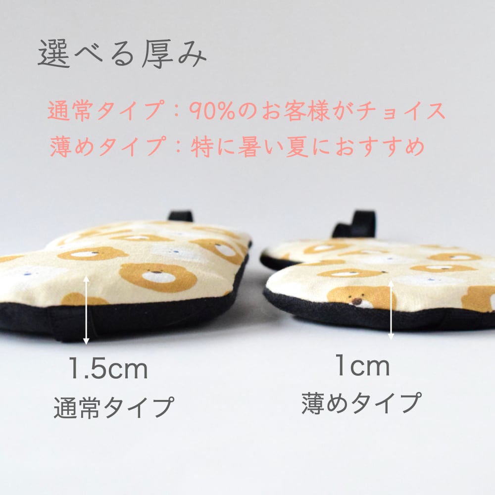 つけ心地を追求して2種類の厚みがございます、迷ったらまずは8割以上のお客様が選べれている「通常タイプ」がお勧めです。