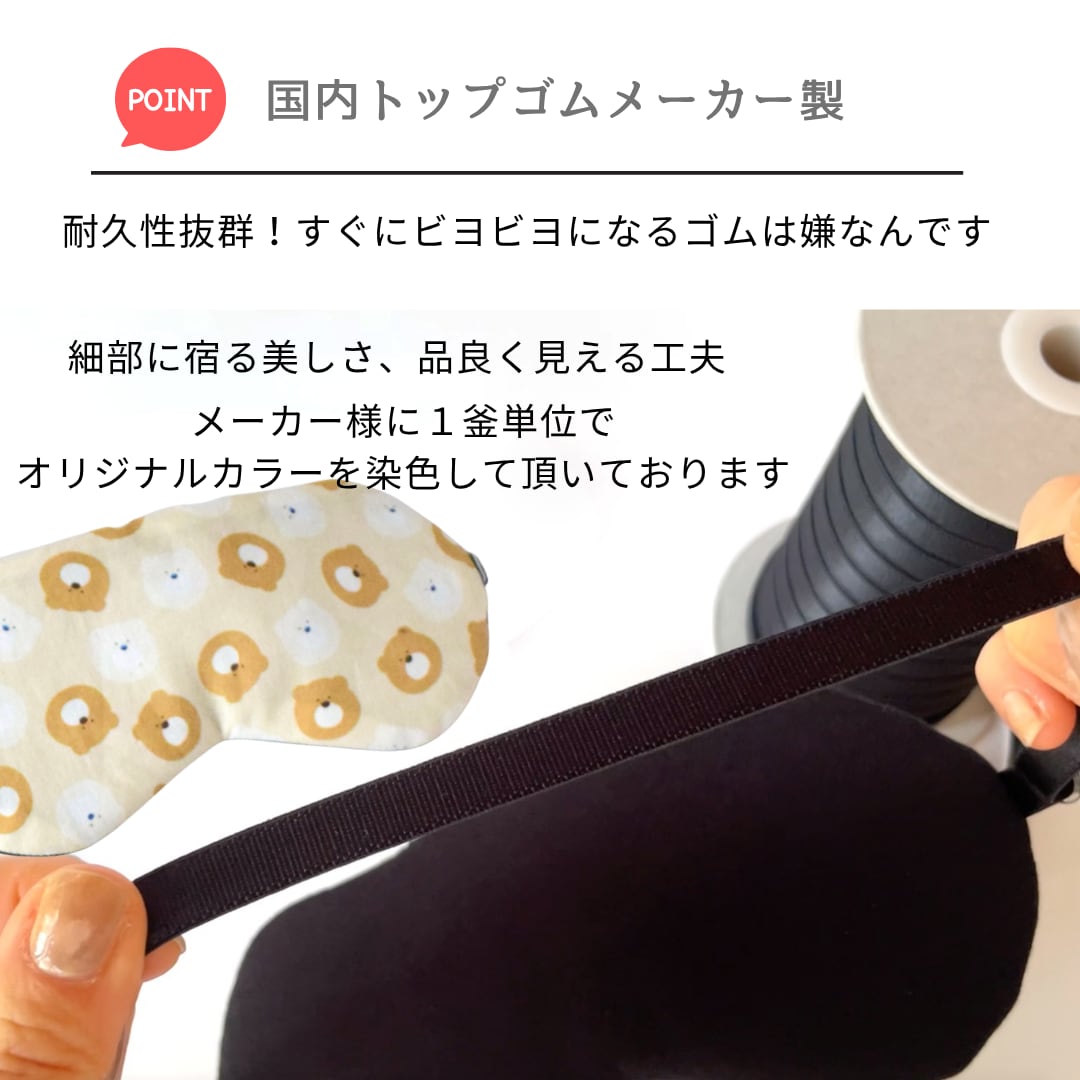 丸くてふんわりしたクマちゃんのイラストがかわいいアイマスクです。