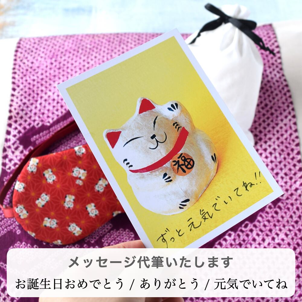 お得な2点セット|福ねこちゃんアイマスク|収納ポーチ付|和柄|無料ギフトラッピング有り