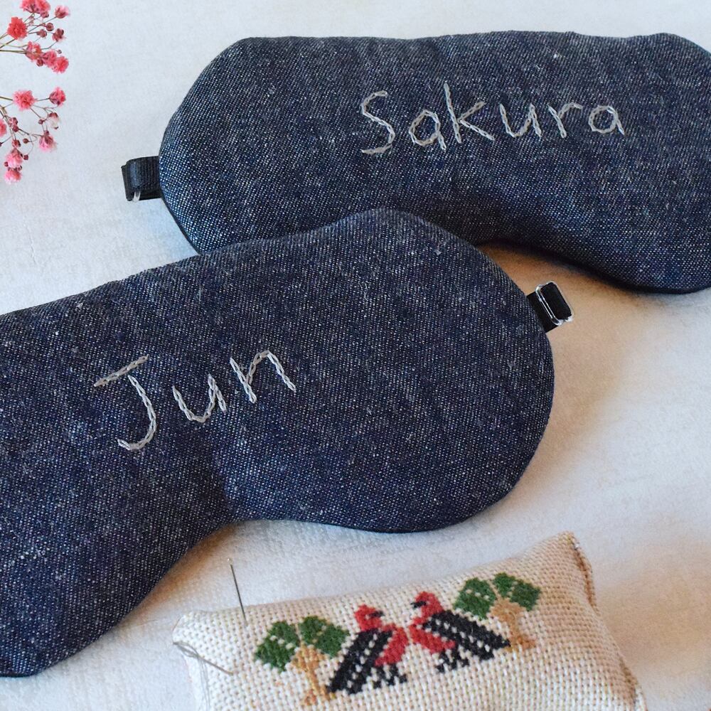 お名前刺繍アイマスク|リネンデニム|収納ポーチ付|カスタムメイド